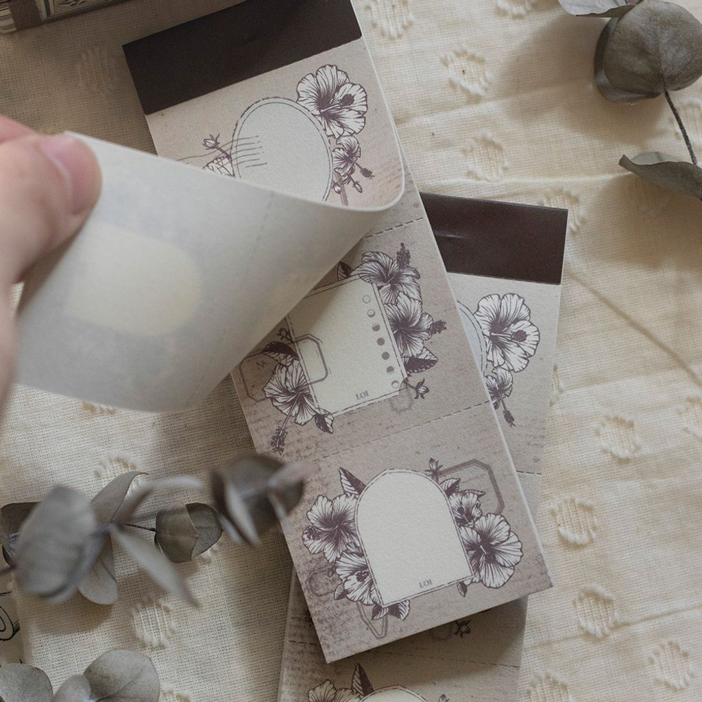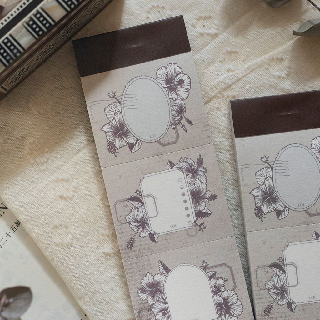 【11/17出貨】舊書頁 - 朱槿花框 便箋本 Old Book Page - Hibiscus Frame Letter Pad