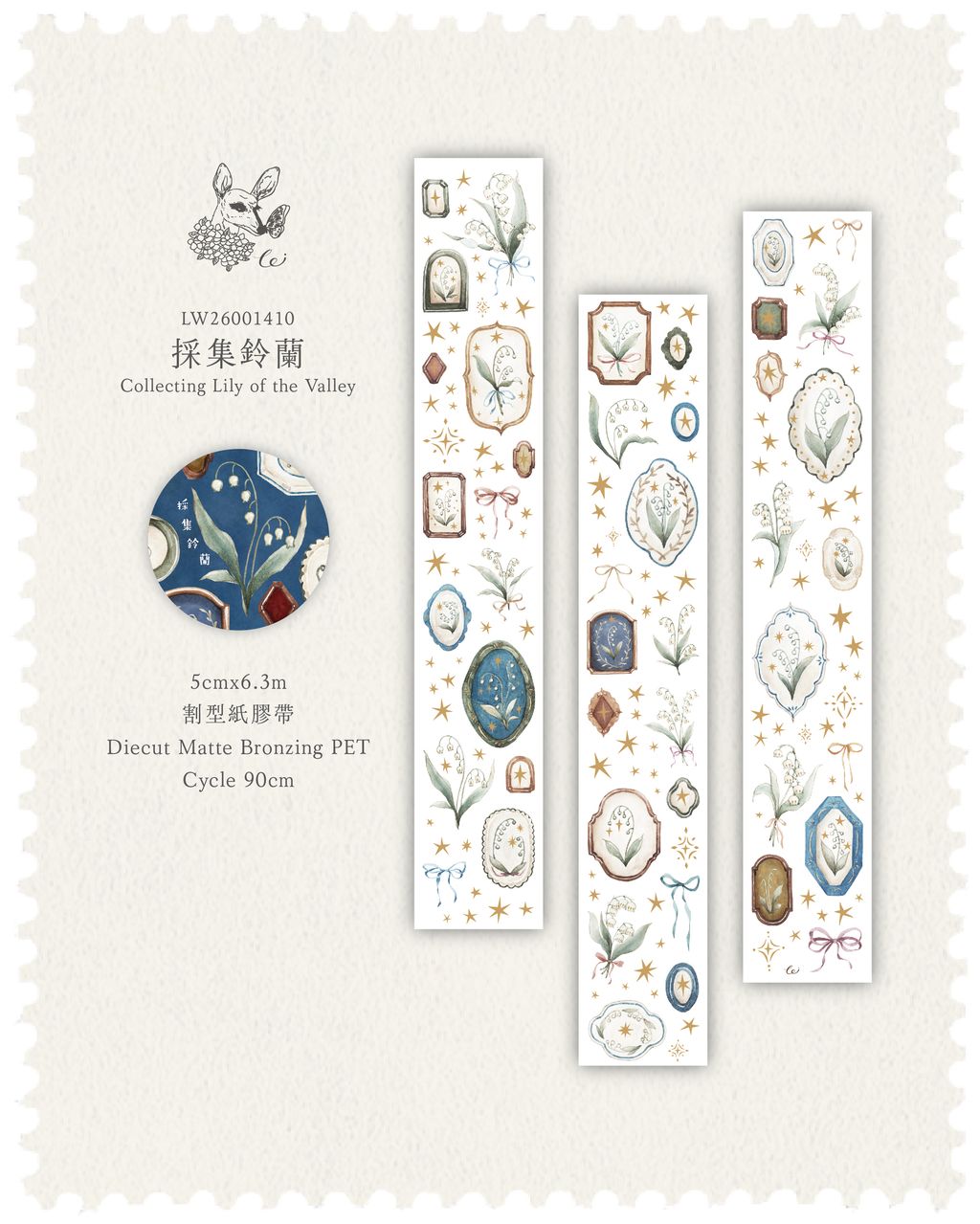 採集鈴蘭 5cm*6m燙金割型霧P膠帶 Collecting Lily of the Valley - Diecut Matte Bronzing PET