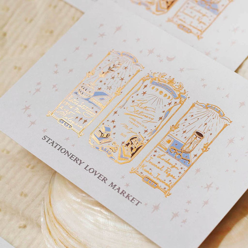 超厚象牙卡,彩印+燙古銅金Extra Thick Ivory Card Stock, Full-Color Printing + Antique Gold Foil Stamping.