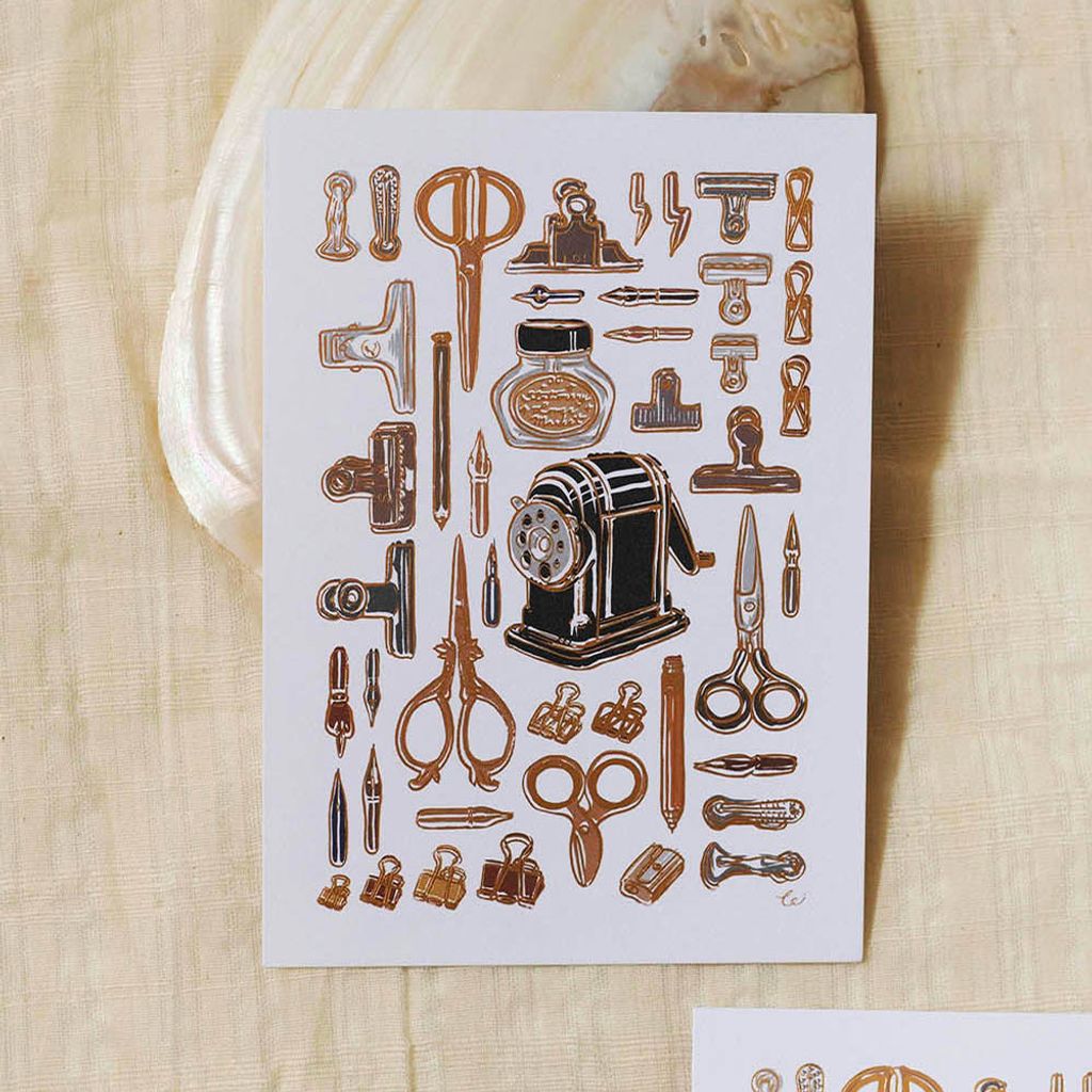 文具小集 Retro stationery - 燙金明信片 Stationery Lover Market “Retro Stationery” Postcard