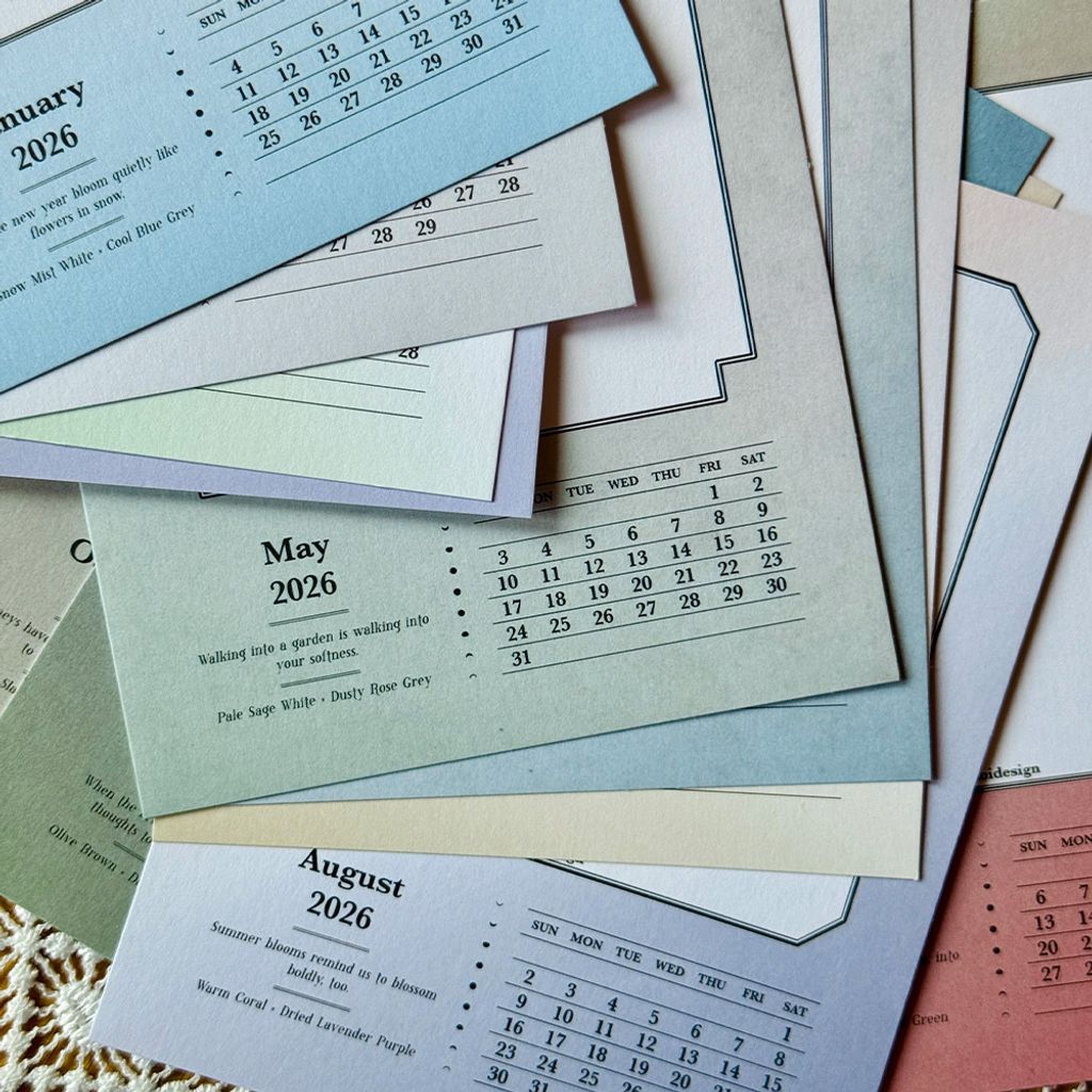 2026每月彩色作業月曆卡(各1入) 2026 Monthly Color Calendar Cards (1 of each design)