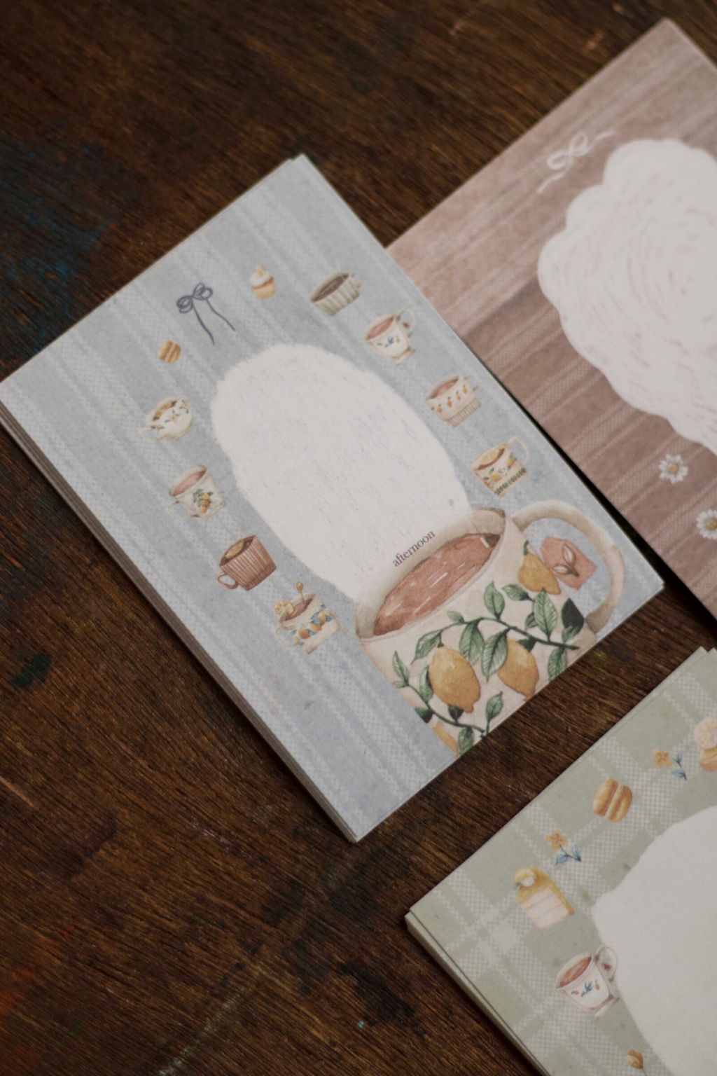 My imagined lemon collector displays her mugs on shelves and decorates her walls with plates—this vision inspired the design of the Mini 5 memo set. I chose colors that my daughter loves, and seeing how much she enjoys them makes me feel like the world is filled with just a bit more love.