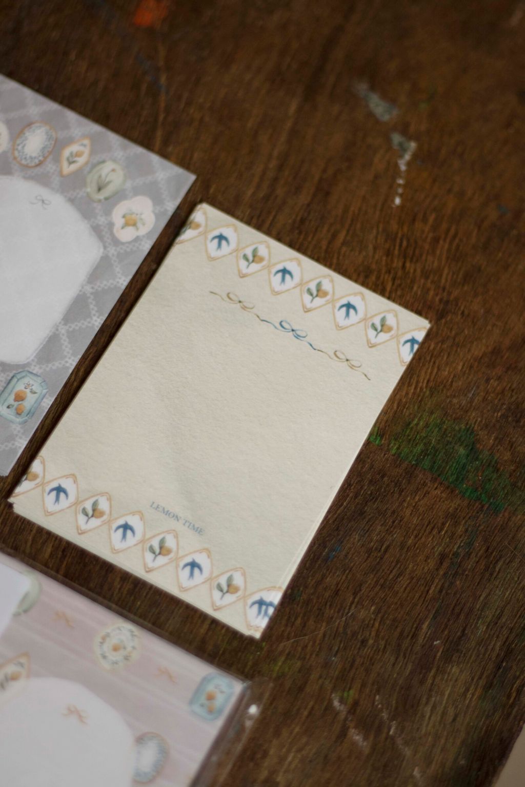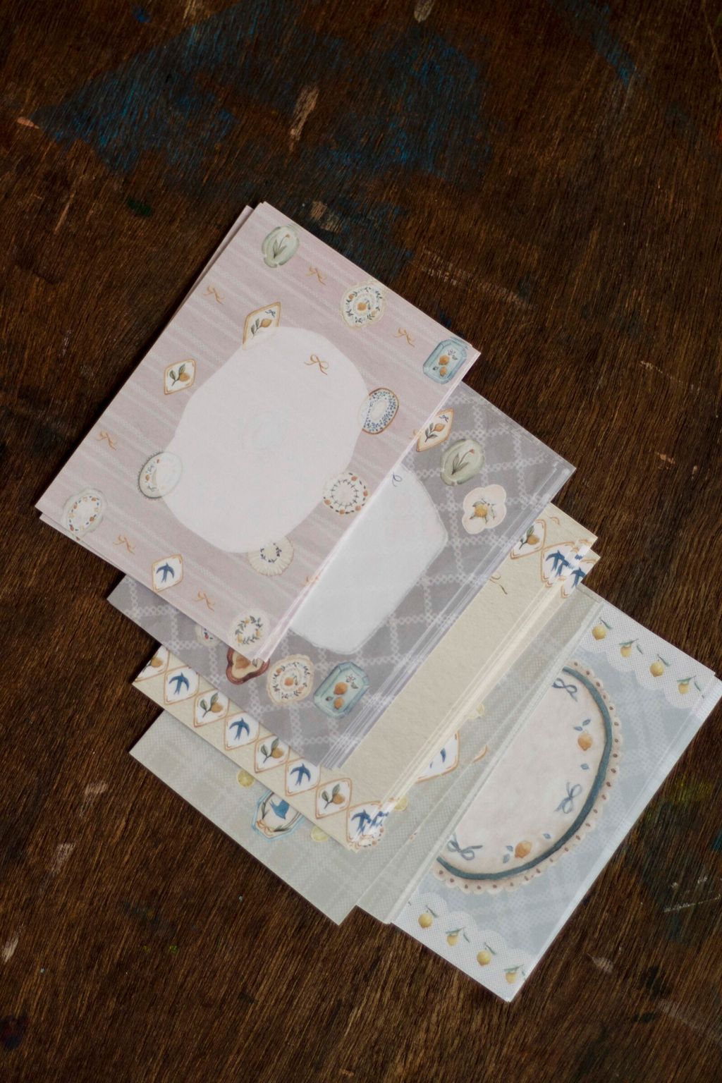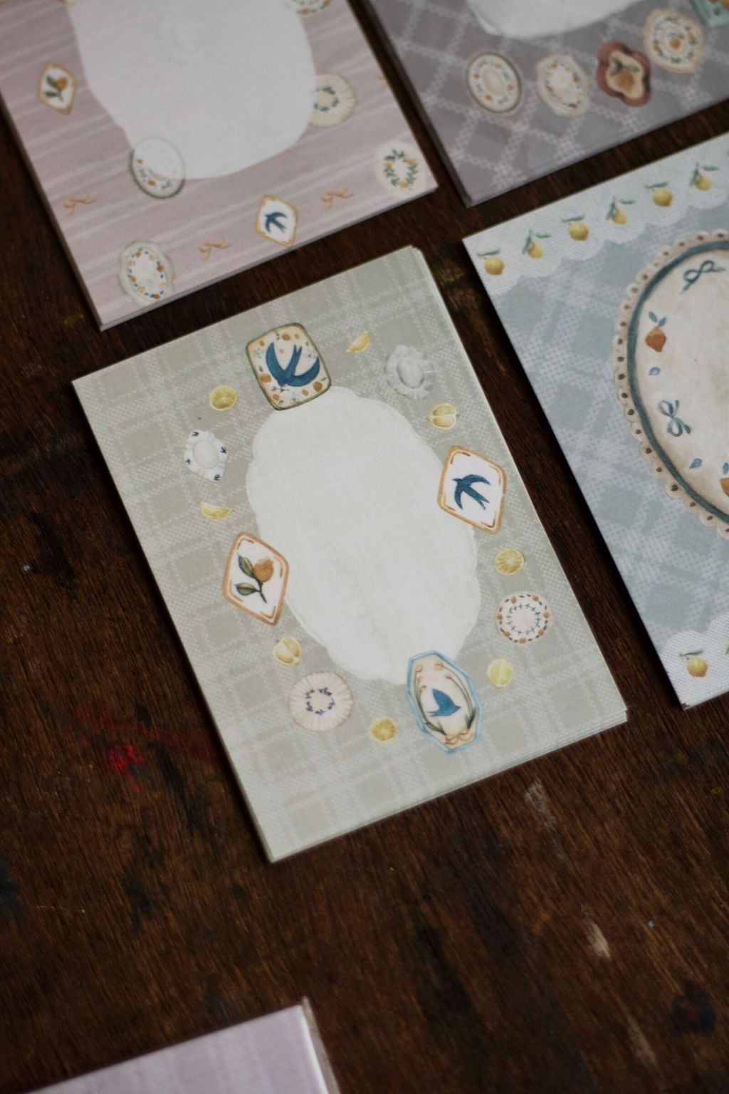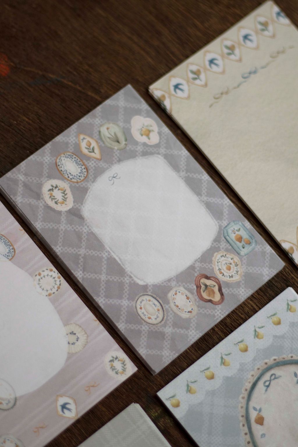 My imagined lemon collector displays her mugs on shelves and decorates her walls with plates—this vision inspired the design of the Mini 5 memo set. I chose colors that my daughter loves, and seeing how much she enjoys them makes me feel like the world is filled with just a bit more love.